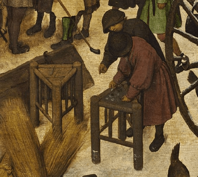 Here’s they are in ‘The Census at Bethlehem’ by Pieter Bruegel the Elder (1566):
