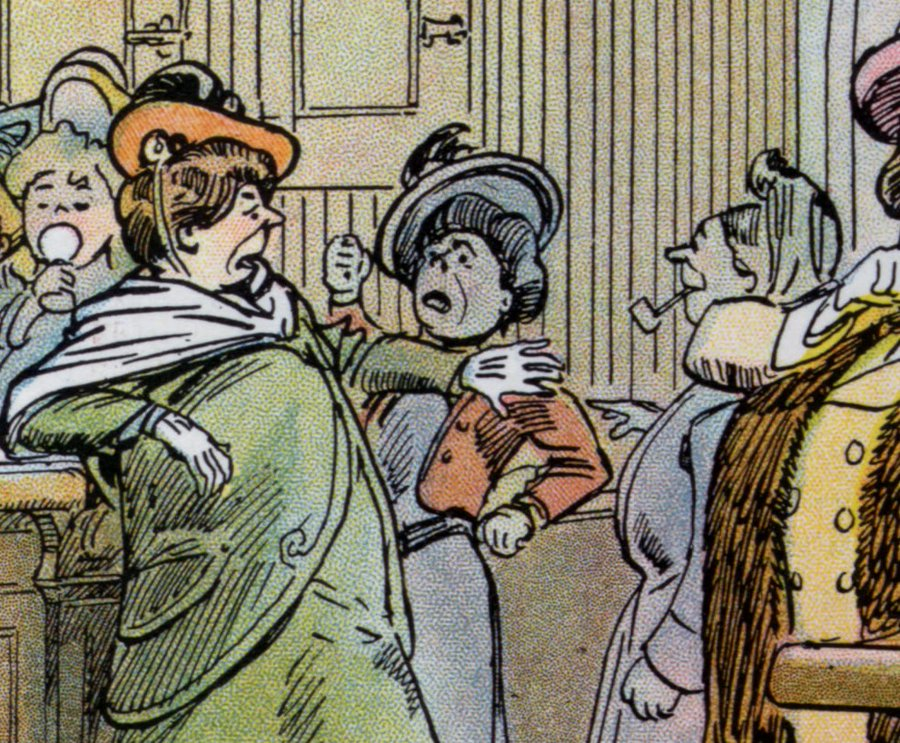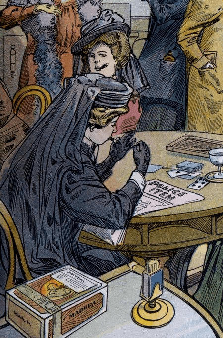 The artist is showing us what plenty of men thought was the hellish vision of women doing… well what a lot of chaps were doing!