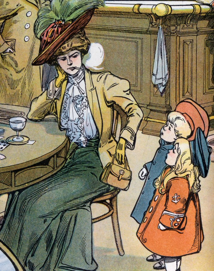 Ah no, pesky kids, coming to bother mum while she’s having a few drinks and smokes.