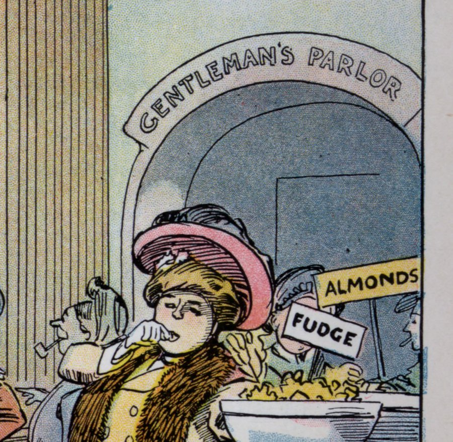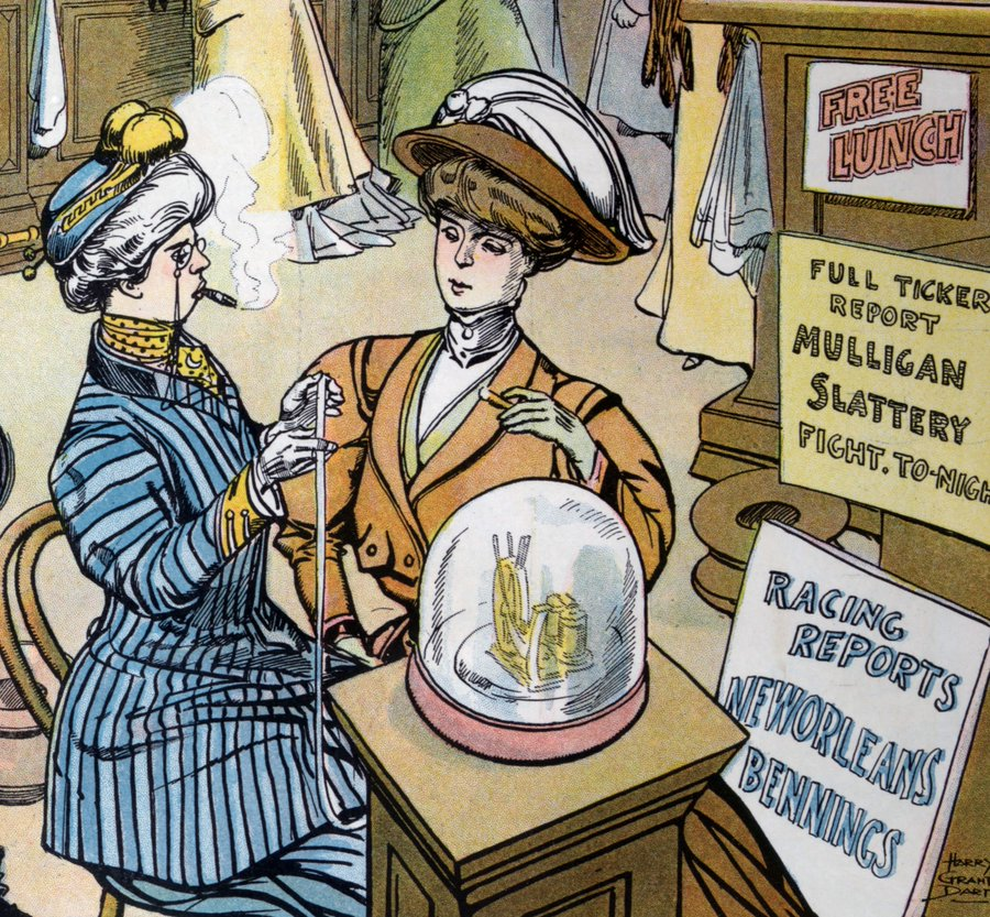 This two page drawing by Harry Grant Dart was published in Puck magazine in 1908 and shows the nightmare of some Edwardian chaps; women having the same fun they were having!