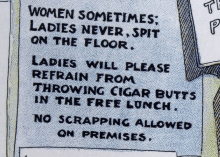 And this is the ultimate insult… the men are stuck in the backroom, out of the way, not bothering the women having their smokes, they can just sit in the parlour and talk about fashion or something.