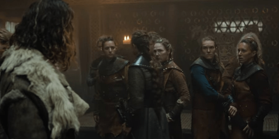 Ok, I’m all for women warriors and I’m even convinced there were way more than most historians think, but they were probably still not that common and having a bunch of em just burst into the hall to stop a fight like some cops, is a bit much: