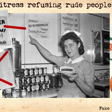 This image is being shared described as showing a rather glamorous diner waitress in the 1950s. It doesn’t. What it does show is a famous actress pretending to be a waitress in a movie from the 1940s. You can see the actual scene here; This is Lana Turner, one of America’s most famous actresses and … More NOT a glamorous 1950s diner waitress