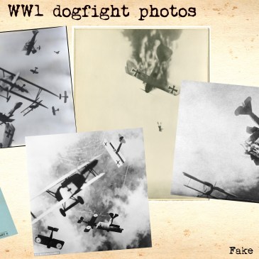 These pictures have been shared online and even published in books, newspaper, documentaries, etc. as being real First World War photos of aerial combat. They’re not. These photos were made in the 1930s by American model-maker and former RAF pilot Wesley David Archer in a plot together with his wife Betty to make a lot … More NOT real WW1 dogfight photos